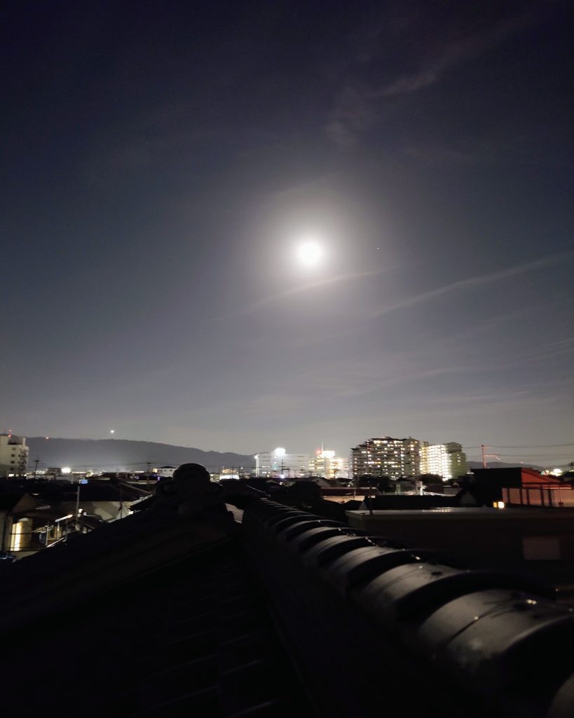 中秋の名月2025 2025.10.6|星/ 願立寺日記 撮影:2025.10/6 21:41 ・ 撮影:2025.10/6 18:56 これは、スマホでパチリ ・ 快晴の秋空でしたが、少し流れ雲が掛かってきたので急いで撮影しました。綺麗な名月です!